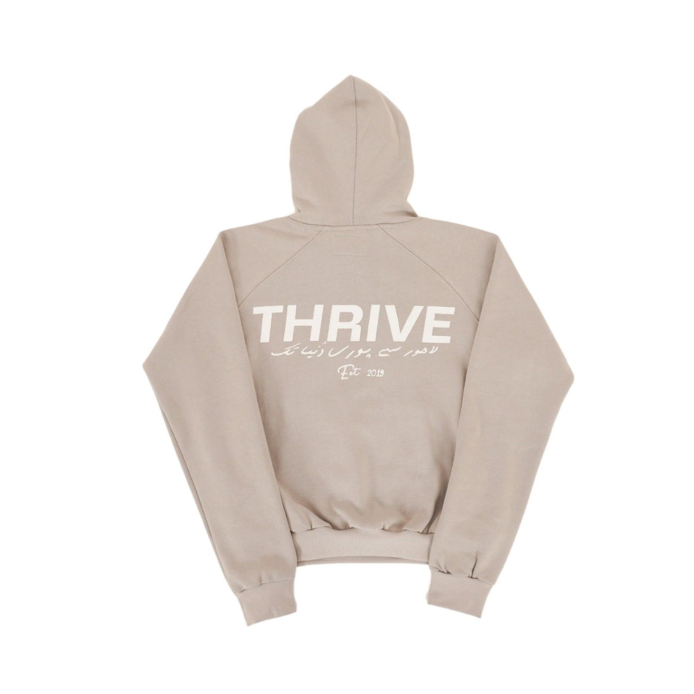 The Foundation Hoodie in grey redefines winter essentials with its premium 500 GSM fleece fabric, delivering unmatched warmth and durability. Featuring screen-printed details on the front and back, this piece blends minimalism with a subtle nod to Thrive’s origins in lahore.