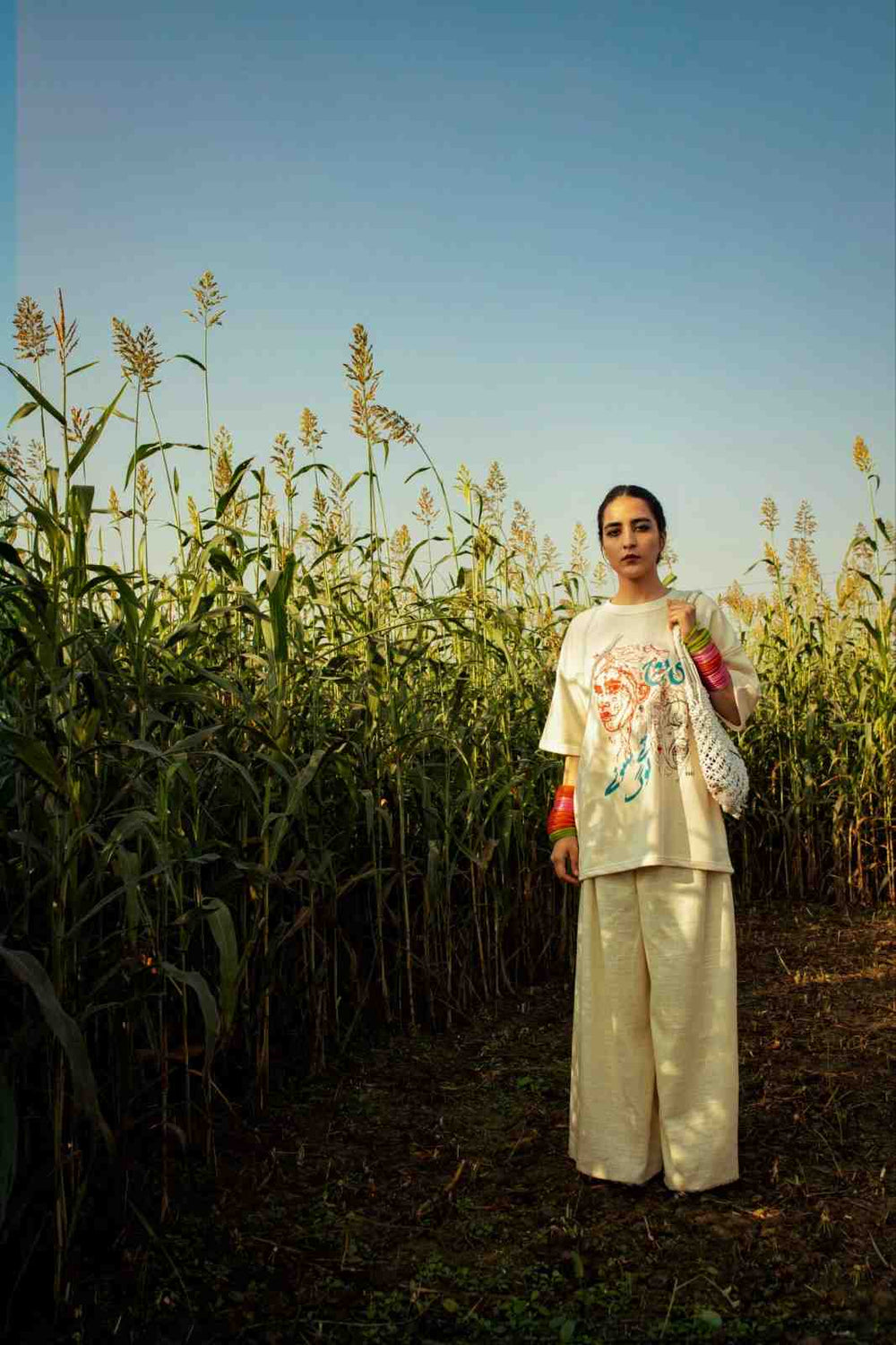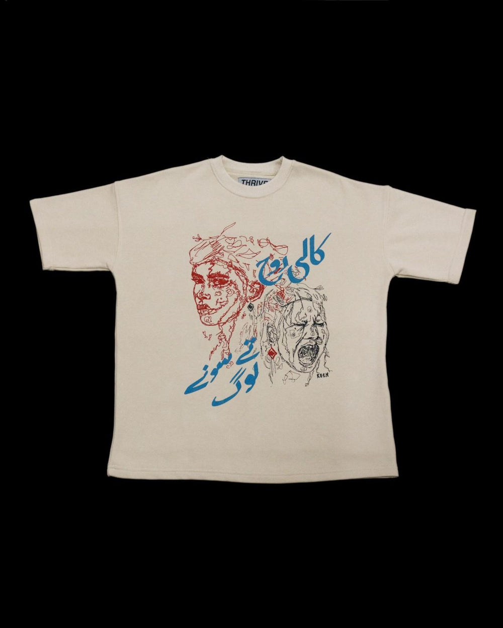 kaali rooh tay sonay loug”, relates to the “two faced” or the “ two sides” of a human physically and spiritually. It instantly reminded the designer of the story he once read of the roman god Janus, who has two faces physically front and back. He symbolises the dualities such as life/death, war/ peace etc. So he decided to incorporate two different faces to represent two different sides and to further symbolise a contrast of emotions was shown between the two faces one being calm (sonay loug) and other hysterical (kaali rooh).