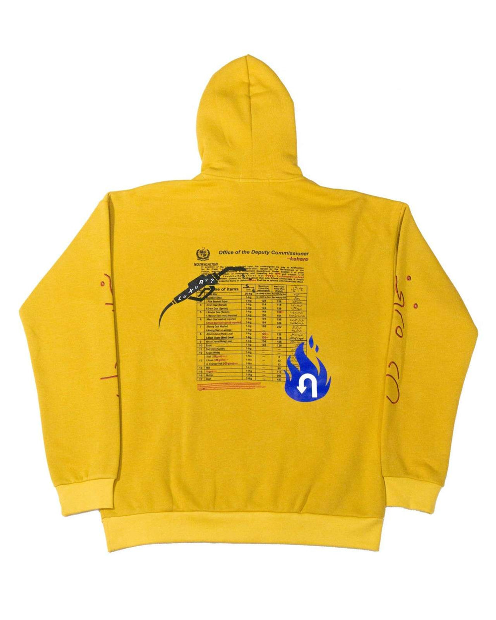 The “mehngai” hoodie is a piece again that is really close to our hearts. This piece represents our take on the current spike in the inflation rate resulting in a record high in fuel prices. Several design elements have been placed in a satirical manner so iykyk.